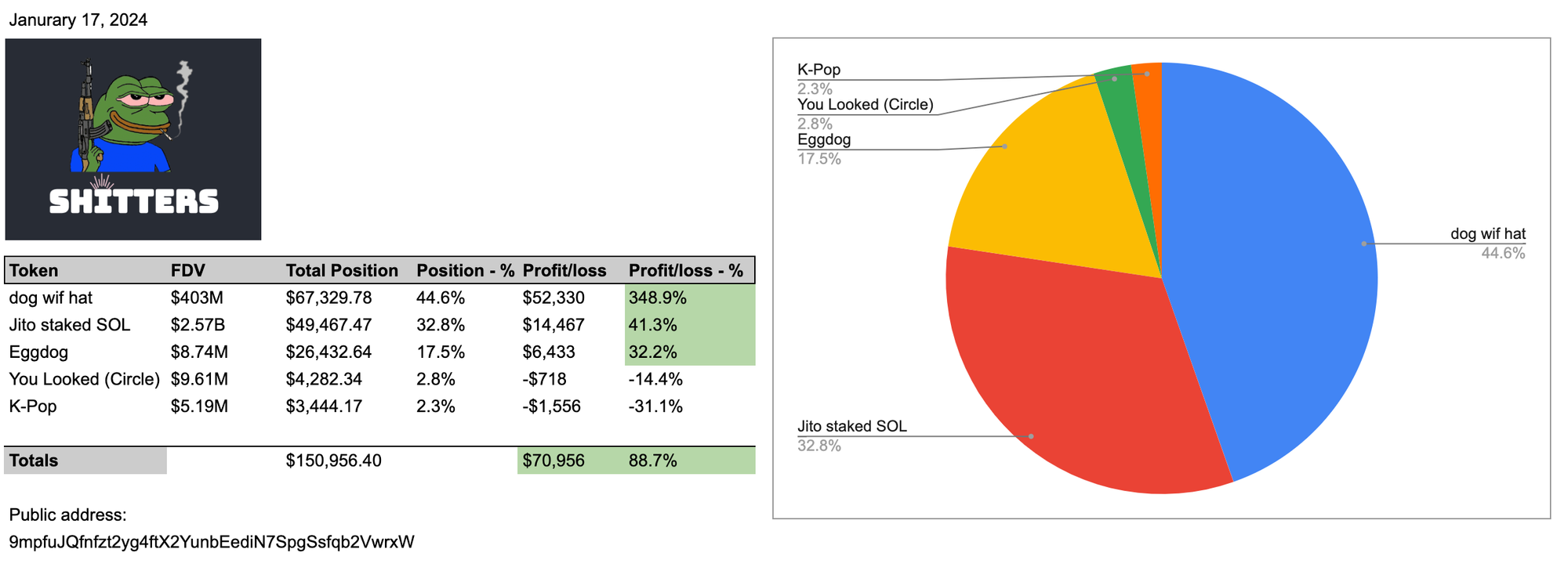 shitters' Public Wallet Up $70k (+188%)